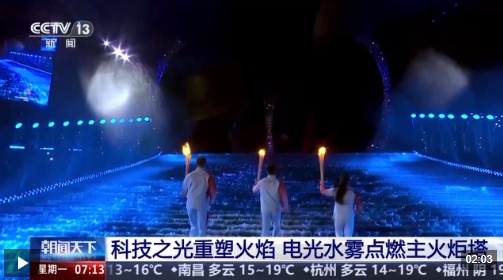 最让人意想不到的是,火炬主塔的“火”并不是真正的火,而是通过电能以“科技火”的电光水雾的形式表现出来。这也是全运会历史上第一次使用非火的主火炬塔。